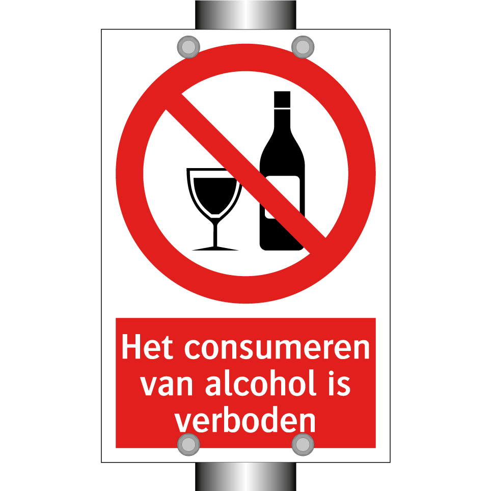 Verbodsbord met de tekst Het consumeren van alcohol is verboden
