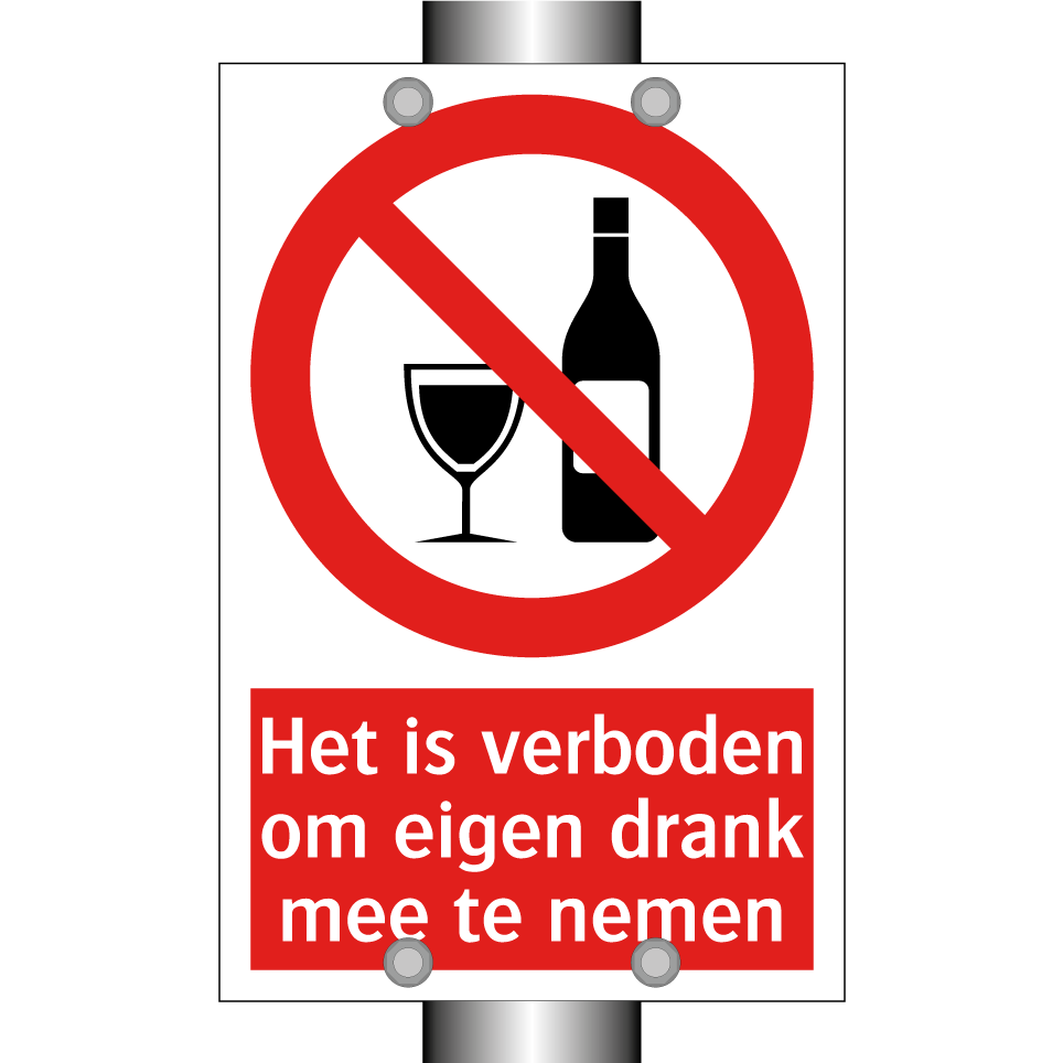 Verbodsbord met de tekst Het is verboden om eigen drank mee te nemen