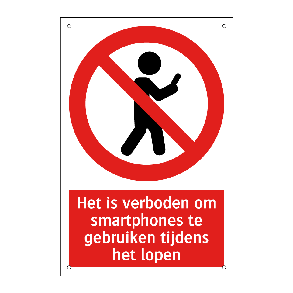 Verbodsbord met de tekst Het is verboden om smartphones te gebruiken tijdens het lopen
