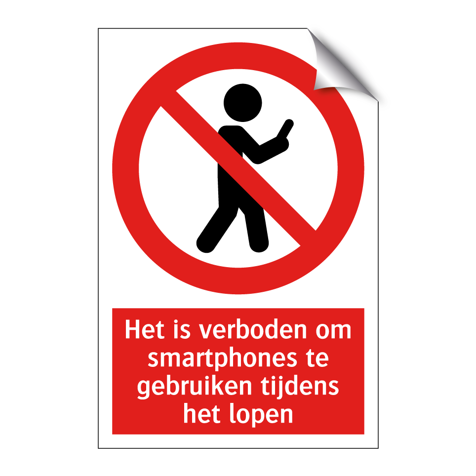 Deze opvallende verbodsbord is ideaal voor drukke openbare ruimtes waar veiligheid en aandacht essentieel zijn. Plaats deze bord op strategische locaties zoals winkelcentra, treinstations, en kantooromgevingen om voetgangers eraan te herinneren dat het gebruik van mobiele telefoons tijdens het lopen niet is toegestaan. Door de duidelijke rode achtergrond en witte tekst trekt de bord onmiddellijk de aandacht en helpt het ongelukken en afleidingen te voorkomen. Dit waarschuwingsbord is een effectieve manier om een veilige en georganiseerde omgeving te bevorderen, en zorgt ervoor dat iedereen zich bewust is van de regels die gelden in de ruimte.