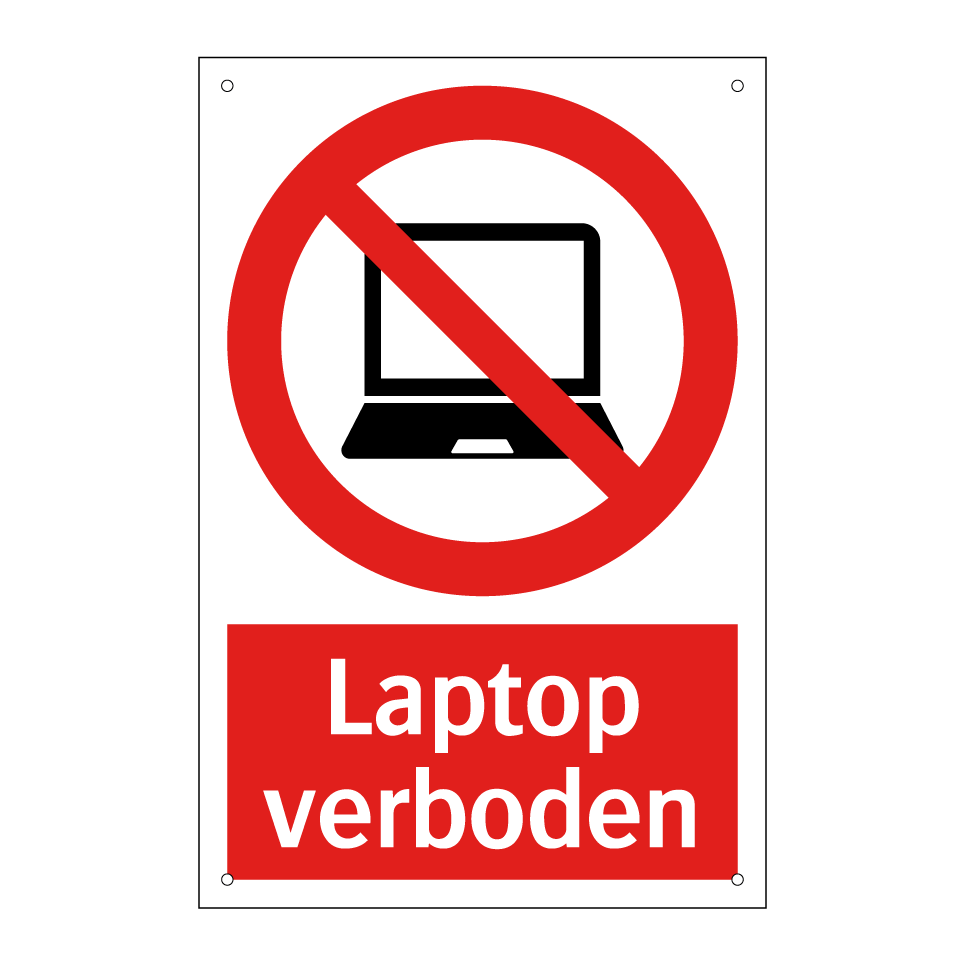 Verbodsbord met de tekst Laptop verboden