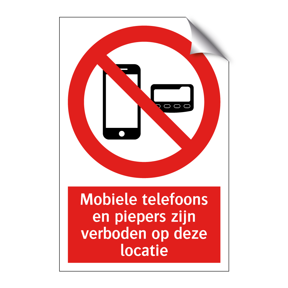Verbodsbord met de tekst Mobiele telefoons en piepers zijn verboden op deze locatie