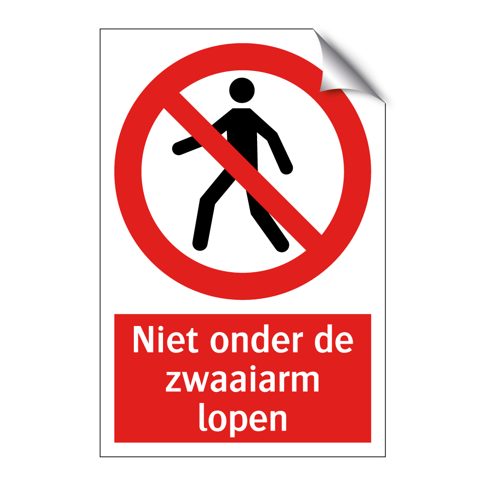 Verbodsbord met de tekst Niet onder de zwaaiarm lopen