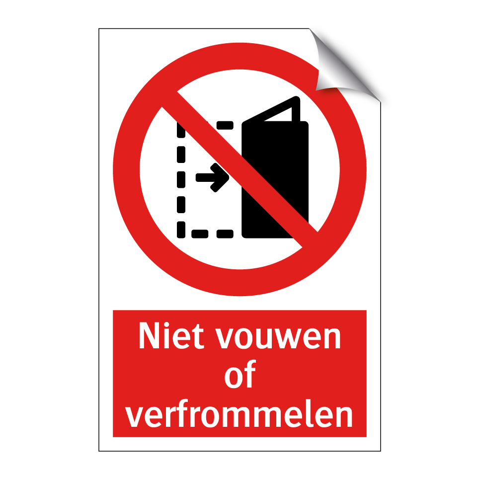 Verbodsbord met de tekst Niet vouwen of verfrommelen