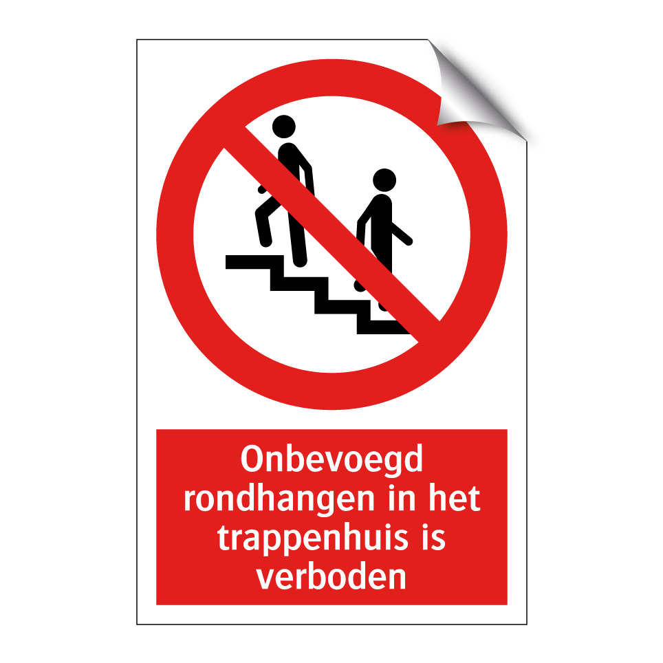 Verbodsbord met de tekst Onbevoegd rondhangen in het trappenhuis is verboden
