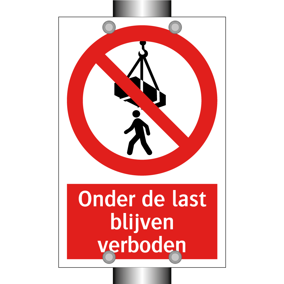 Deze opvallende verbodsbord is essentieel voor het waarborgen van de veiligheid op de werkplek. Het waarschuwt duidelijk tegen het verblijven onder een last, wat cruciaal is in omgevingen zoals bouwplaatsen, magazijnen en fabrieken waar zware objecten worden verplaatst. Door de heldere rode achtergrond en witte tekst met een duidelijke symbool, trekt het onmiddellijk de aandacht van voorbijgangers en werknemers. Plaats deze waarschuwingsbord op strategische locaties zoals ingangen van werkzones, nabij kranen of heftrucks, en in opslagruimtes om risico's te minimaliseren en een veilige werkomgeving te bevorderen.
