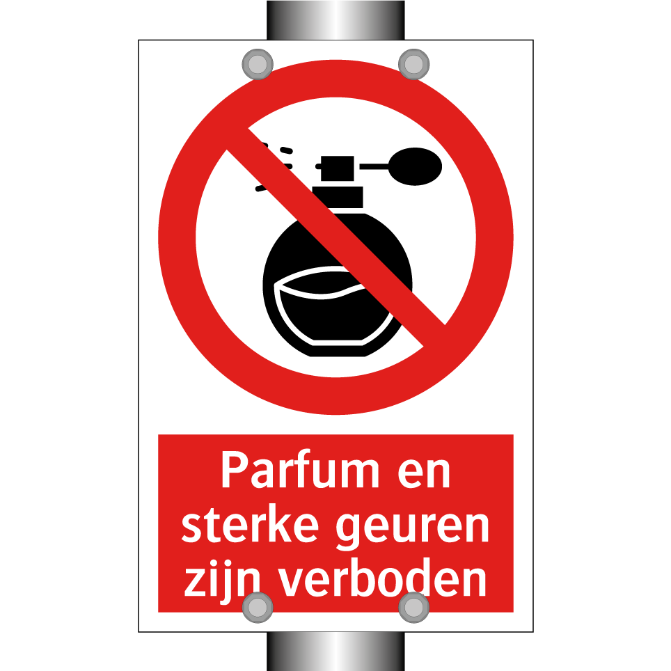Verbodsbord met de tekst Parfum en sterke geuren zijn verboden