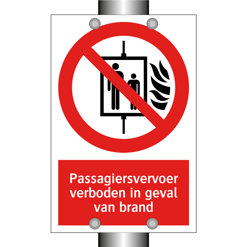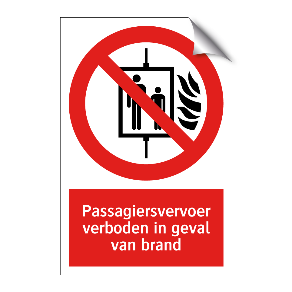 Deze opvallende verbodsbord is essentieel voor de veiligheid in noodsituaties. Het is ontworpen om passagiersvervoer te verbieden in geval van brand, waardoor het een cruciale rol speelt in het waarborgen van de veiligheid van iedereen in de omgeving. Dit bord kan strategisch worden geplaatst in openbare gebouwen, zoals kantoren, winkelcentra en parkeergarages, waar het risico op brand aanwezig is. Door de duidelijke rode achtergrond en witte tekst met een herkenbaar symbool, trekt het onmiddellijk de aandacht en communiceert het effectief het verbod. Dit waarschuwingsbord is een onmisbaar onderdeel van elke veiligheidsstrategie en helpt bij het voorkomen van gevaarlijke situaties.