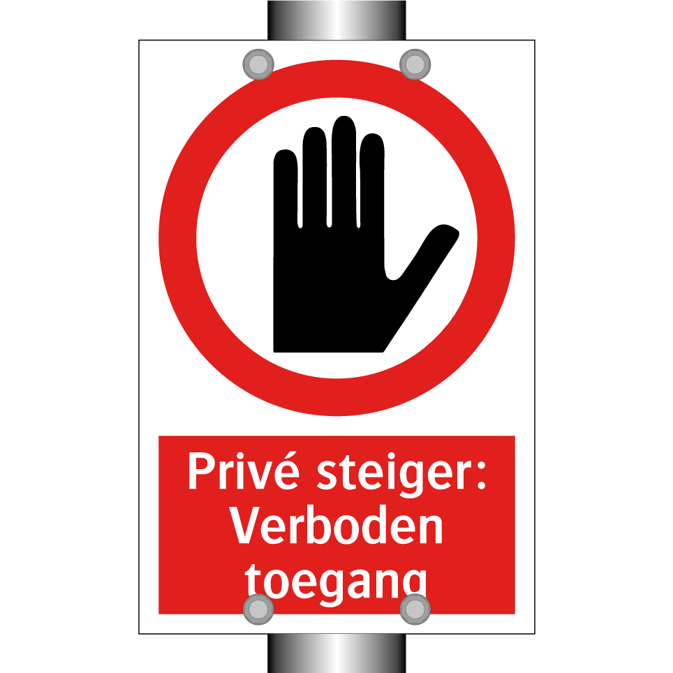 Verbodsbord met de tekst Privé steiger: Verboden toegang