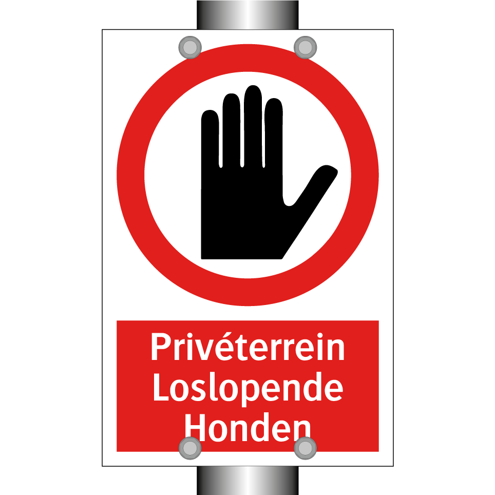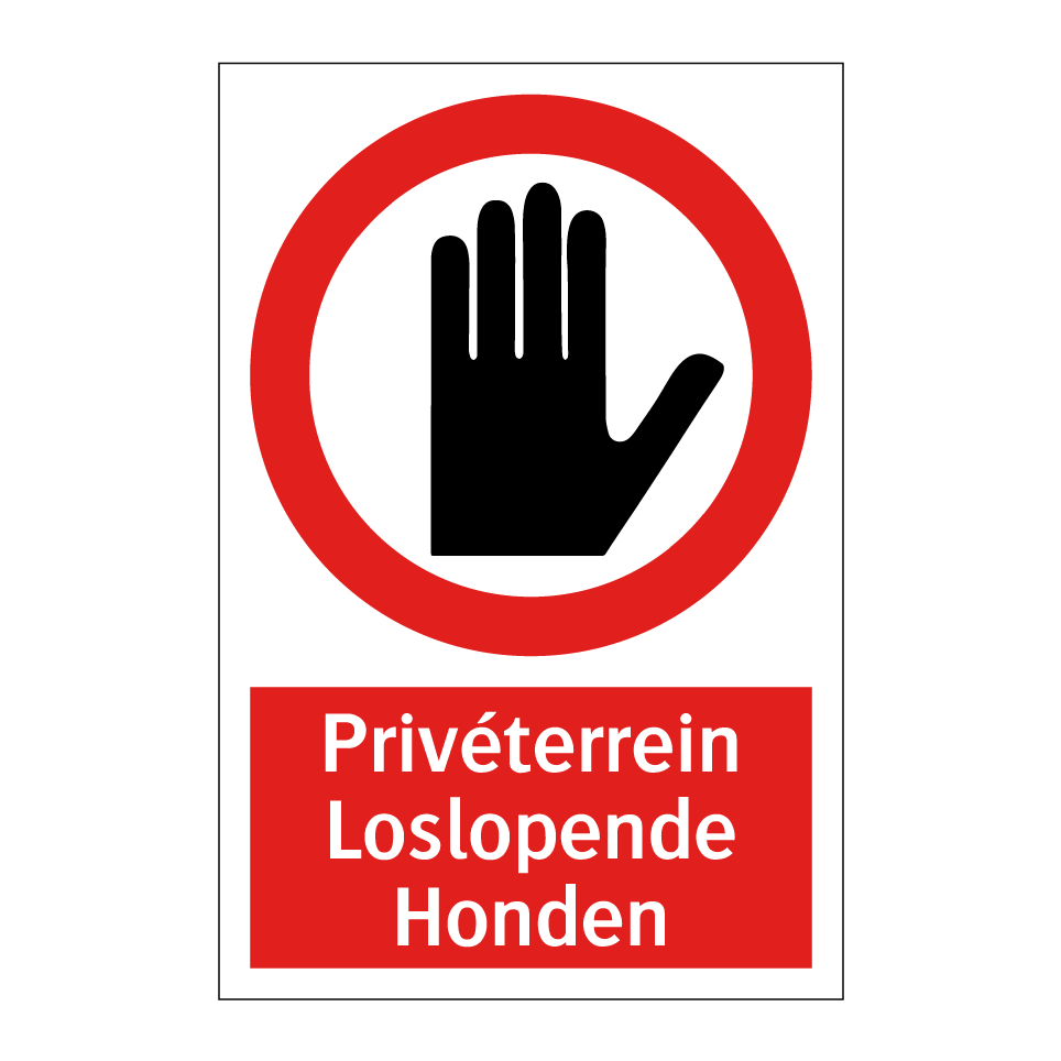 Verbodsbord met de tekst Privéterrein Loslopende Honden