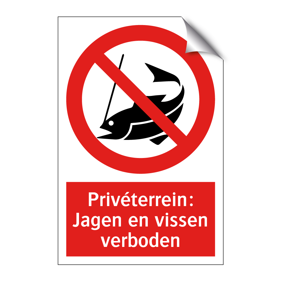 Verbodsbord met de tekst Privéterrein: Jagen en vissen verboden