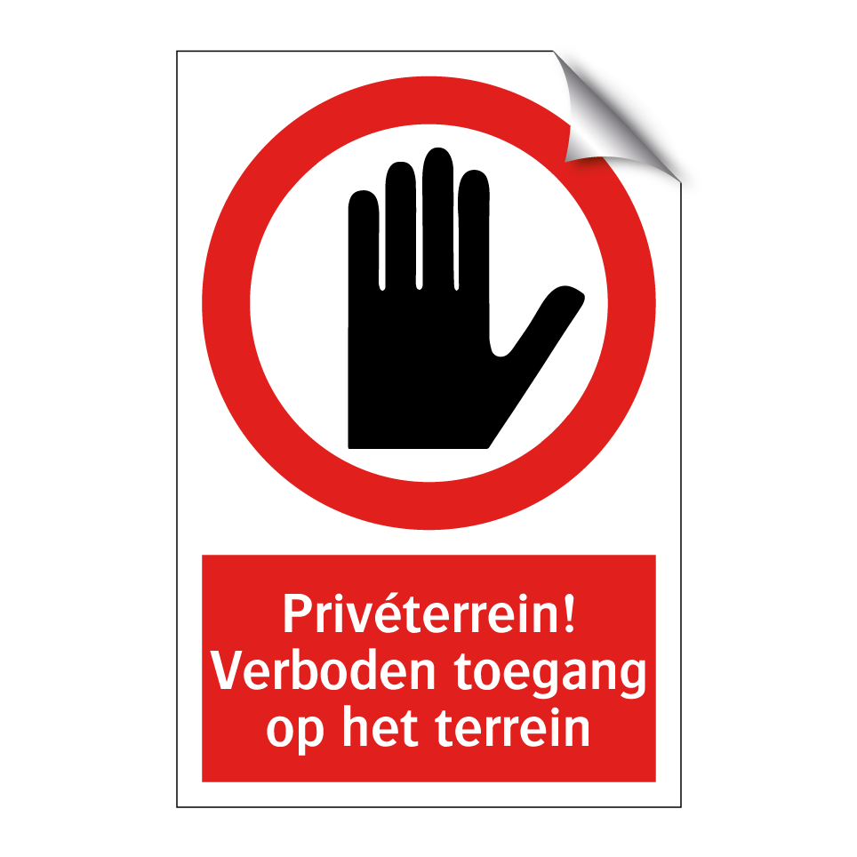 Verbodsbord met de tekst Privéterrein! Verboden toegang op het terrein