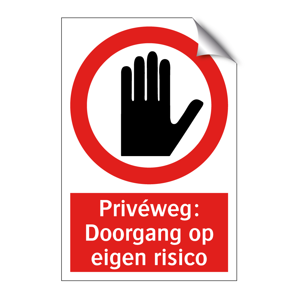 Verbodsbord met de tekst Privéweg: Doorgang op eigen risico