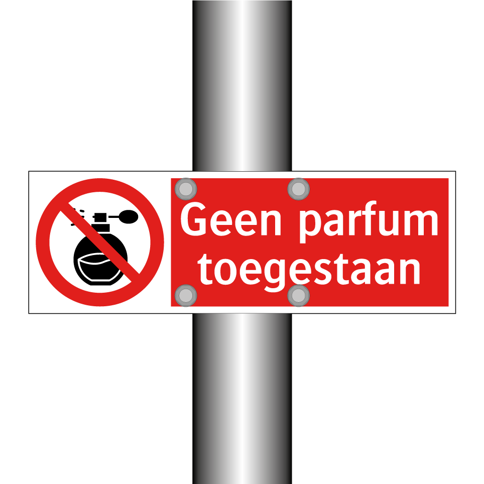 Deze opvallende verbodsbord is ideaal voor gebruik in ruimtes waar het gebruik van parfum ongewenst is. Denk aan kantoren, scholen, ziekenhuizen en andere openbare gebouwen waar allergieën of gevoeligheden een rol spelen. Door de duidelijke rode achtergrond en witte tekst met symbool, is de boodschap niet te missen. Plaats deze bord bij ingangen, in gangen of in gemeenschappelijke ruimtes om bezoekers en medewerkers te informeren en te herinneren aan het parfumvrije beleid. Dit bord helpt bij het handhaven van een geurvrije omgeving, wat bijdraagt aan een aangenamere en gezondere atmosfeer voor iedereen.
