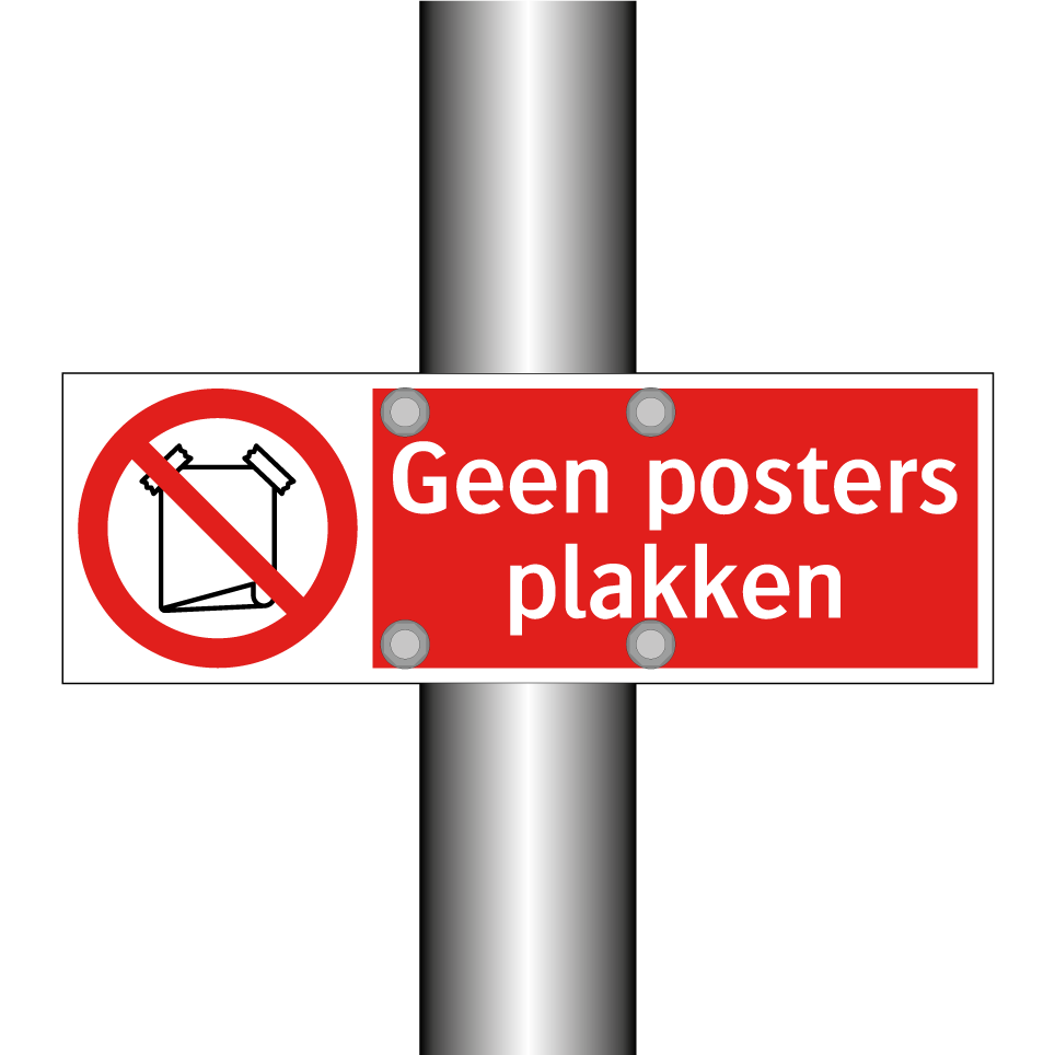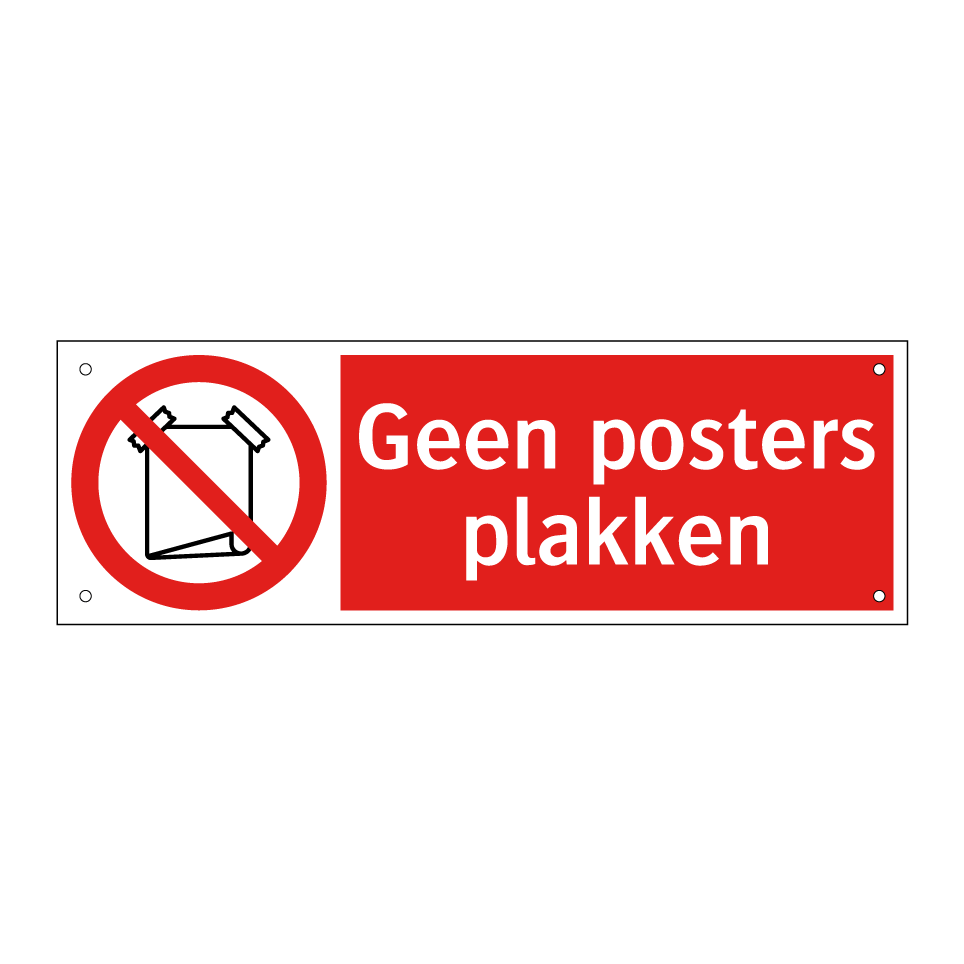 Deze opvallende verbodsbord is ideaal voor het handhaven van regels op openbare en privéterreinen. Met zijn rode achtergrond en duidelijke witte tekst trekt het onmiddellijk de aandacht en communiceert het effectief dat het niet toegestaan is om posters te plakken. Dit bord is perfect voor gebruik op muren, hekken en andere oppervlakken waar ongewenste affiches vaak worden aangebracht. Plaats het bij ingangen van gebouwen, parkeerterreinen of andere strategische locaties om ervoor te zorgen dat uw boodschap duidelijk en zichtbaar is. Het helpt om een nette en georganiseerde omgeving te behouden door ongewenste reclame-uitingen te voorkomen.
