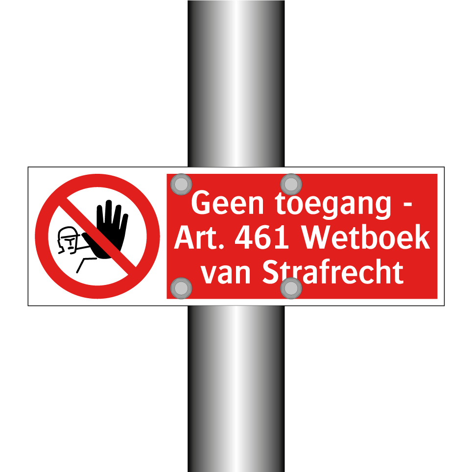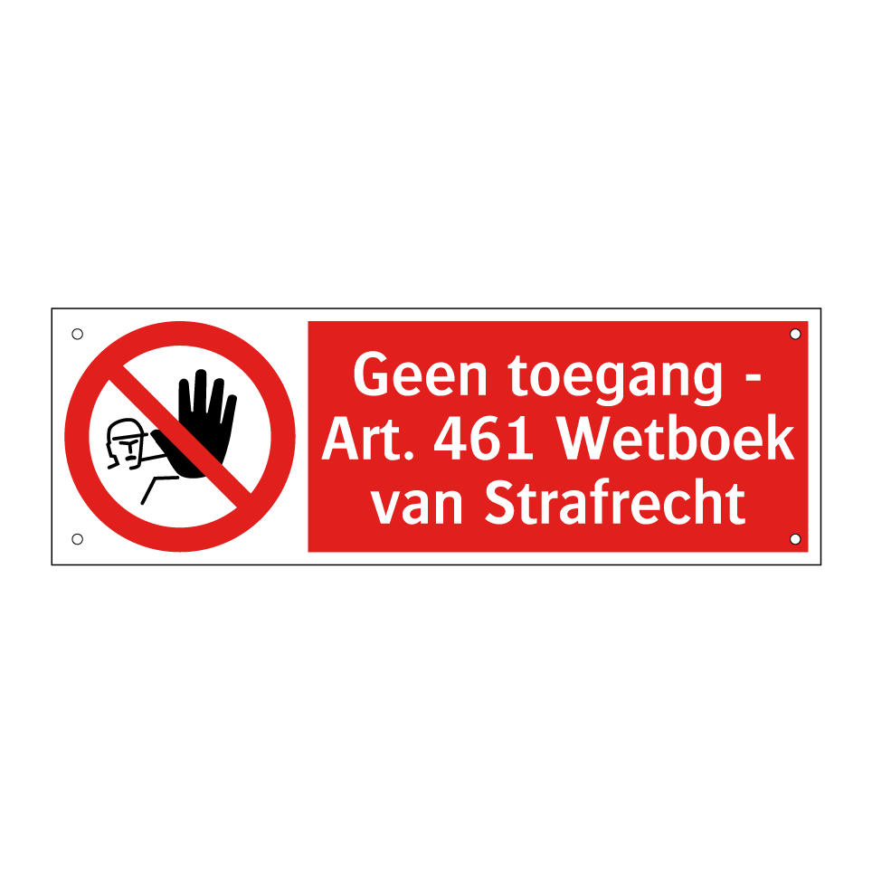 Verbodsbord met de tekst Geen toegang - Art. 461 Wetboek van Strafrecht