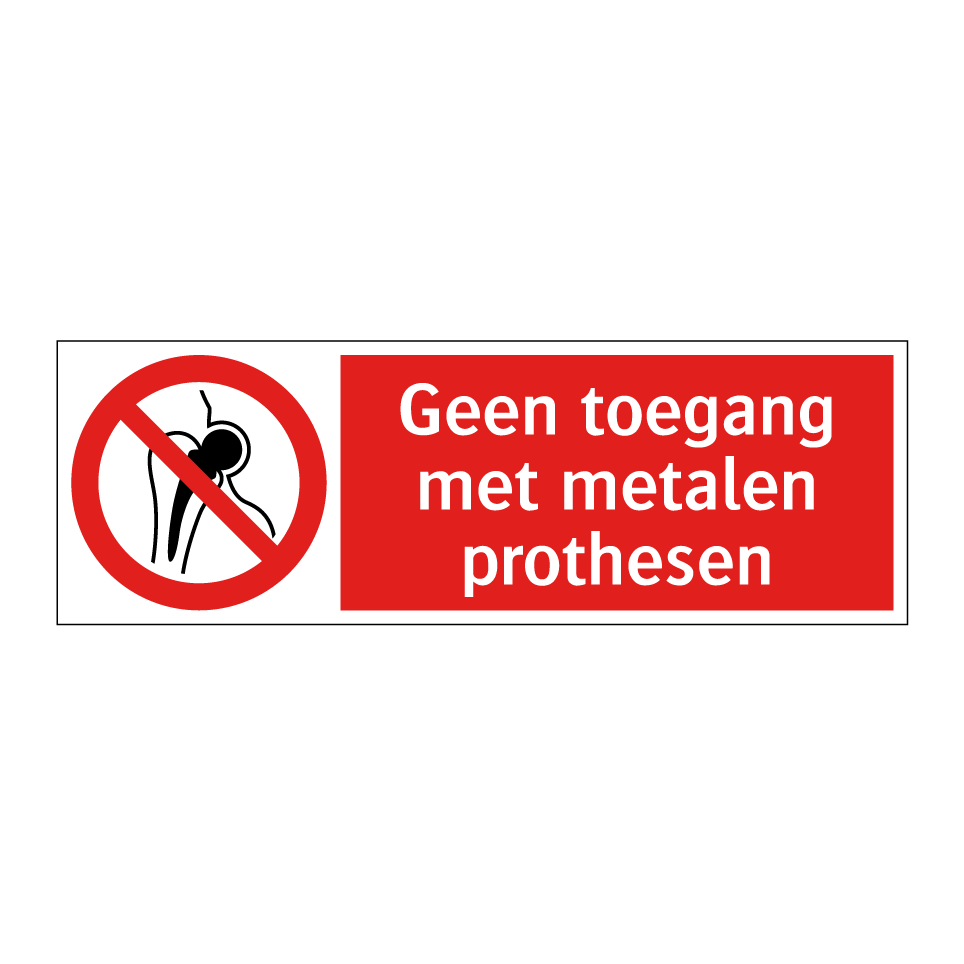 Verbodsbord met de tekst Geen toegang met metalen prothesen