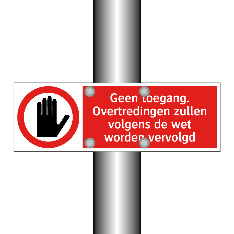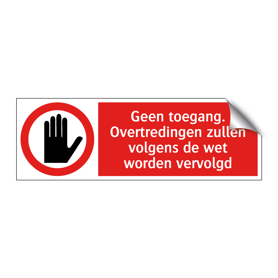 Verbodsbord met de tekst Geen toegang. Overtredingen zullen volgens de wet worden vervolgd
