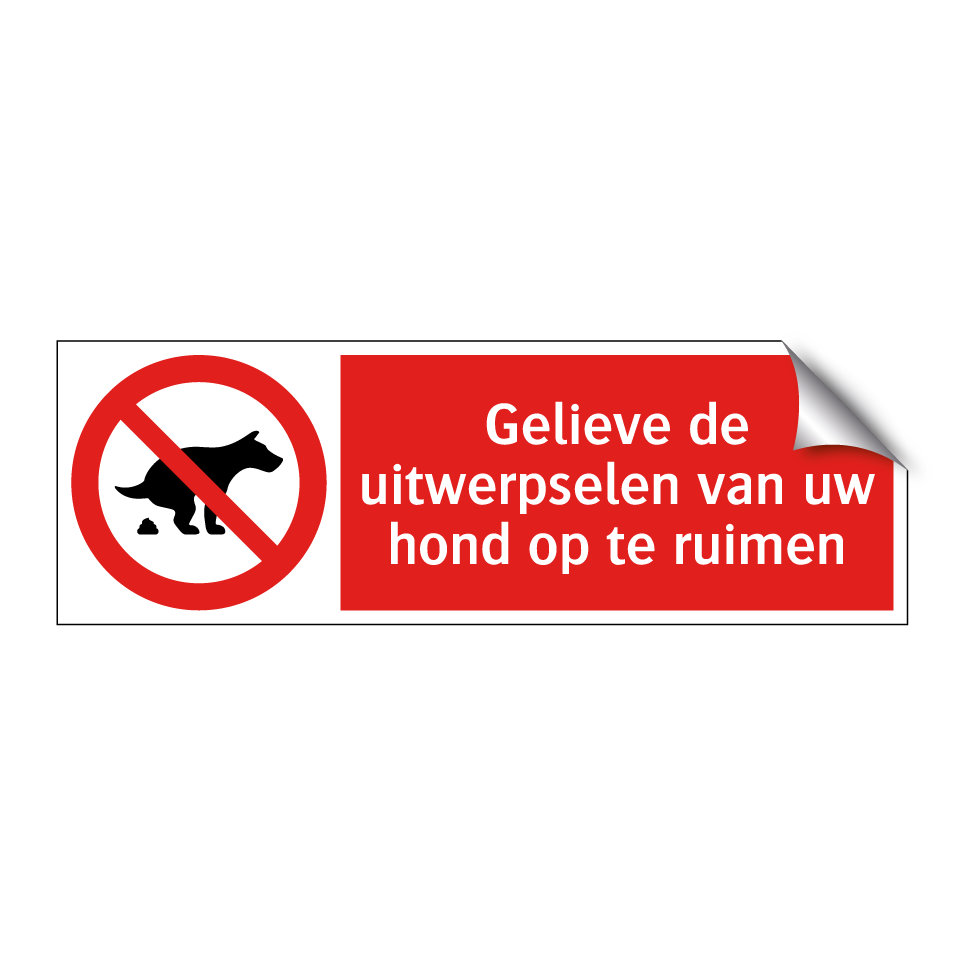 Verbodsbord met de tekst Gelieve de uitwerpselen van uw hond op te ruimen