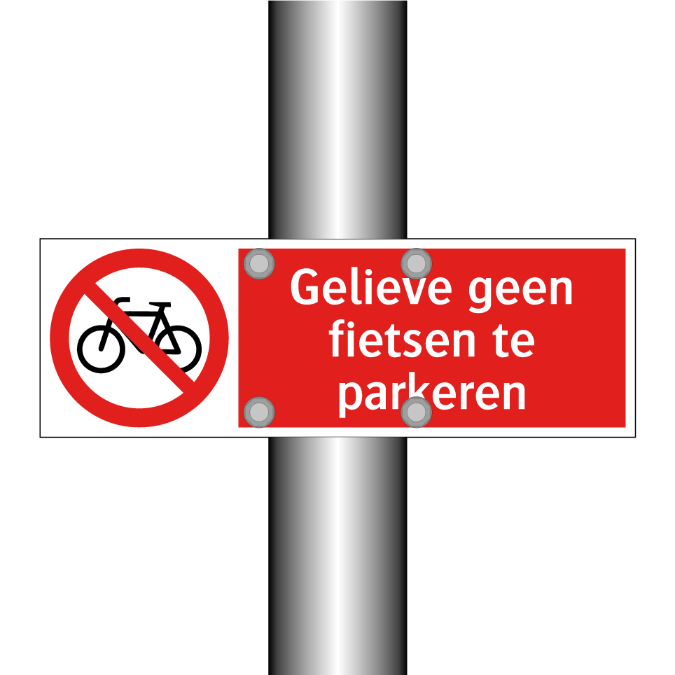 Verbodsbord met de tekst Gelieve geen fietsen te parkeren
