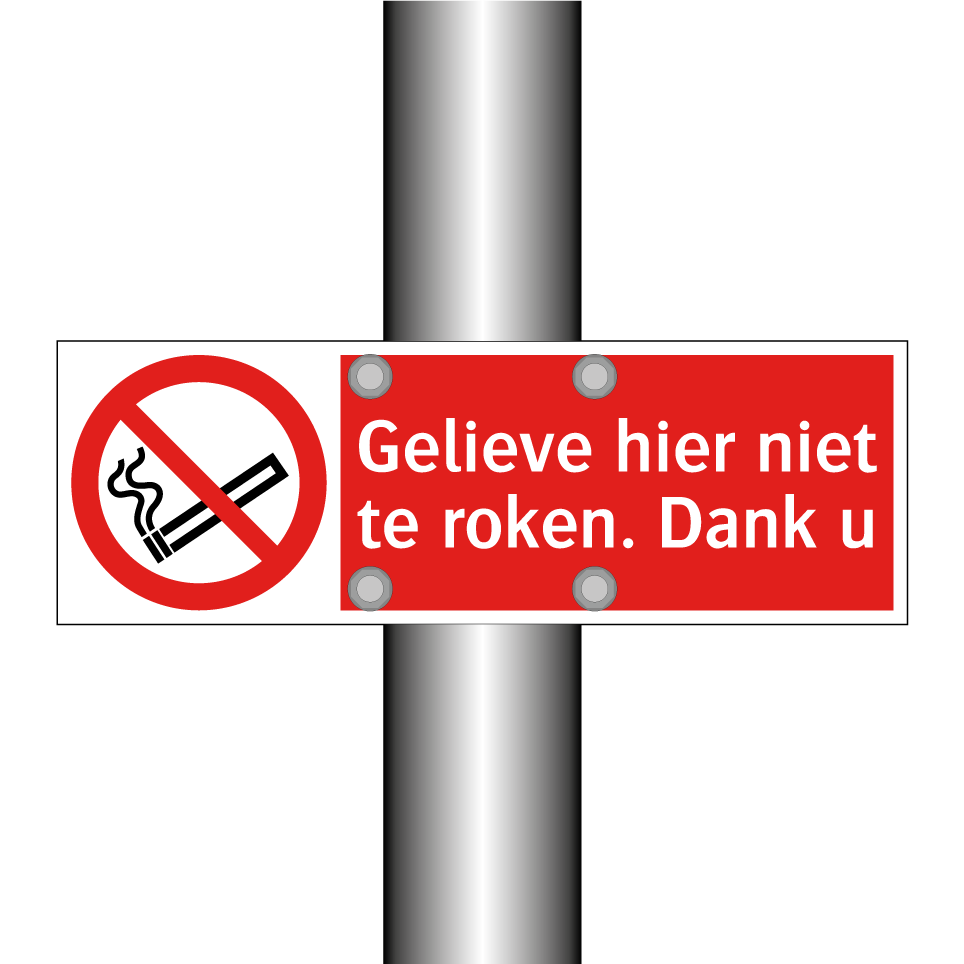 Verbodsbord met de tekst Gelieve hier niet te roken. Dank u