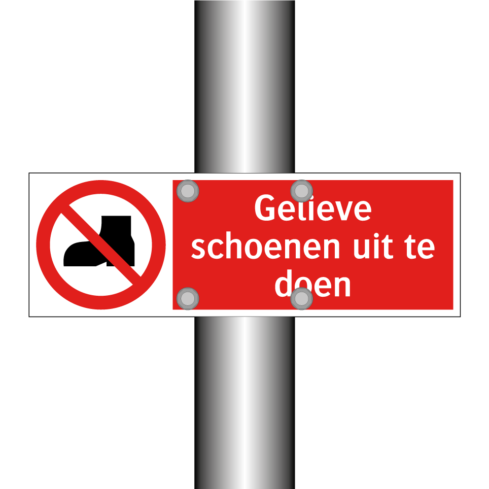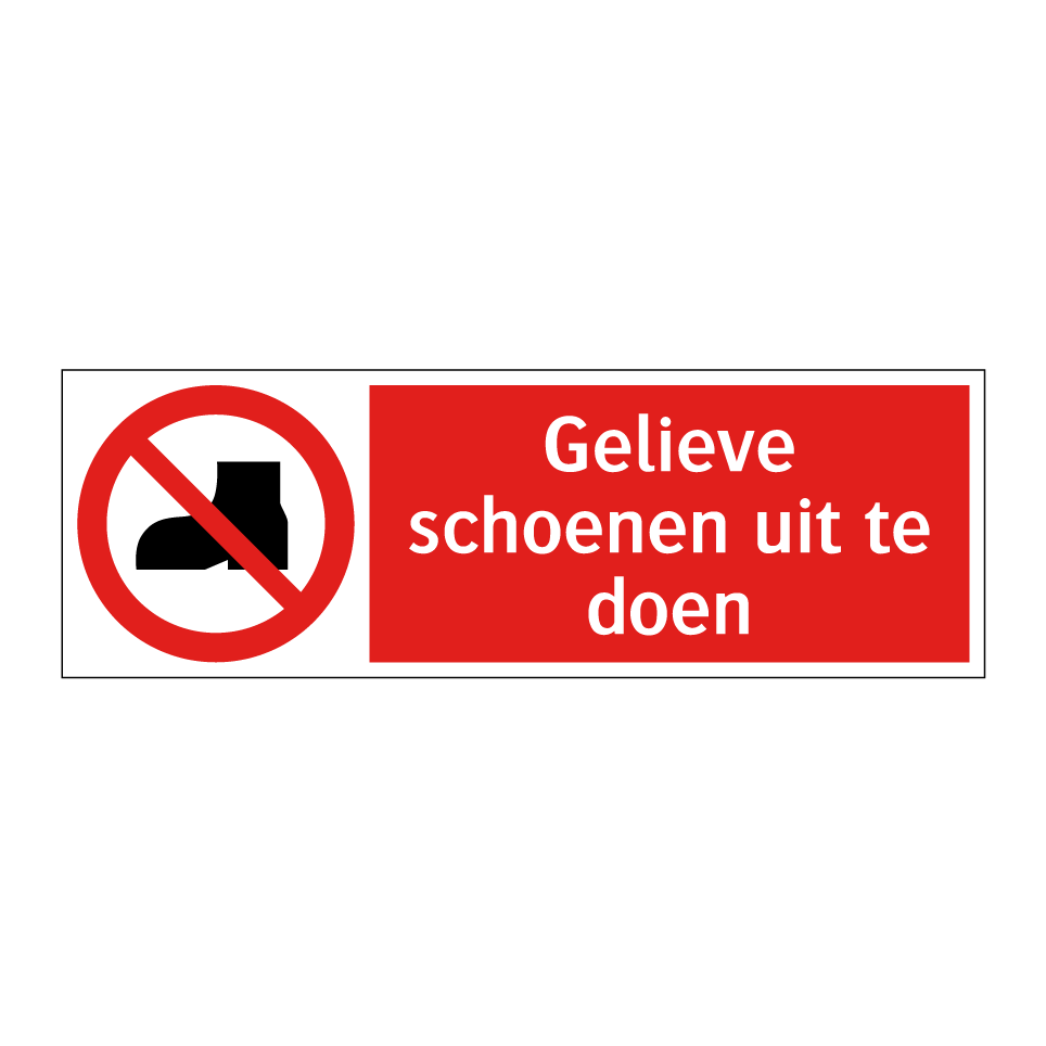 Verbodsbord met de tekst Gelieve schoenen uit te doen
