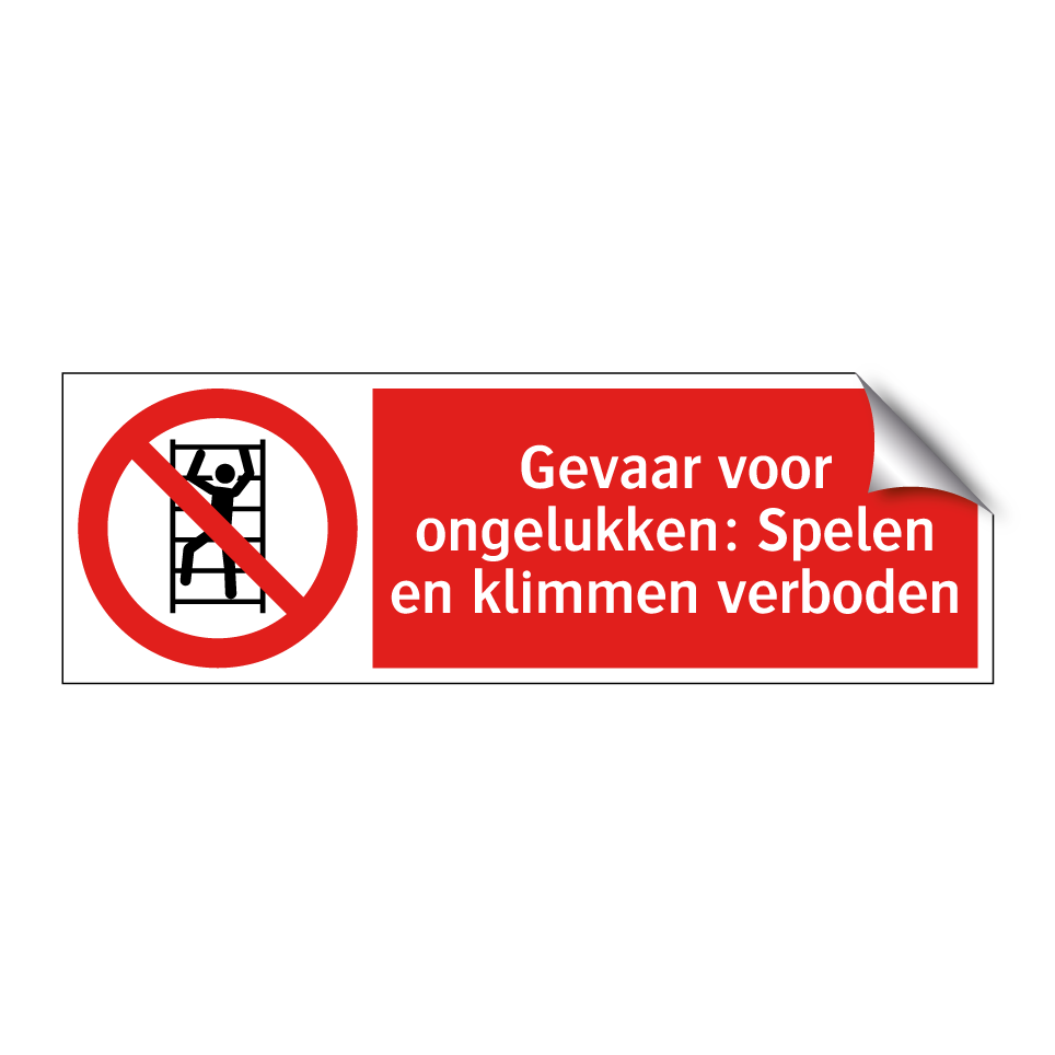 Verbodsbord met de tekst Gevaar voor ongelukken: Spelen en klimmen verboden