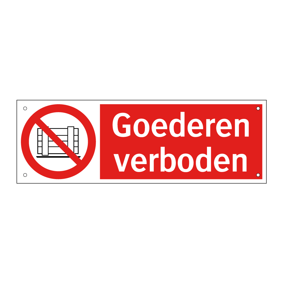 Deze opvallende verbodsbord is ideaal voor het aangeven van verboden zones en het handhaven van regels op verschillende locaties. Met zijn rode achtergrond en duidelijke witte tekst trekt het onmiddellijk de aandacht en communiceert het effectief dat goederen niet zijn toegestaan. Dit bord is perfect voor gebruik in magazijnen, opslagruimtes, laad- en losplaatsen, en andere gebieden waar strikte controle over goederen noodzakelijk is. Door het strategisch te plaatsen bij ingangen of specifieke secties, zorgt het voor een georganiseerde en veilige omgeving. Het verbodsbord is een essentiële toevoeging voor elke locatie die duidelijke richtlijnen en veiligheid wil waarborgen.
