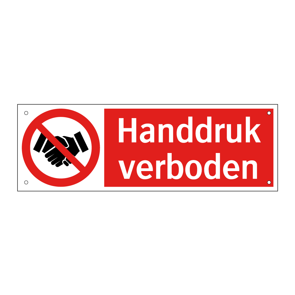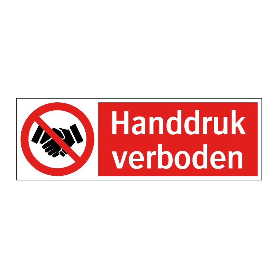 Verbodsbord met de tekst Handdruk verboden