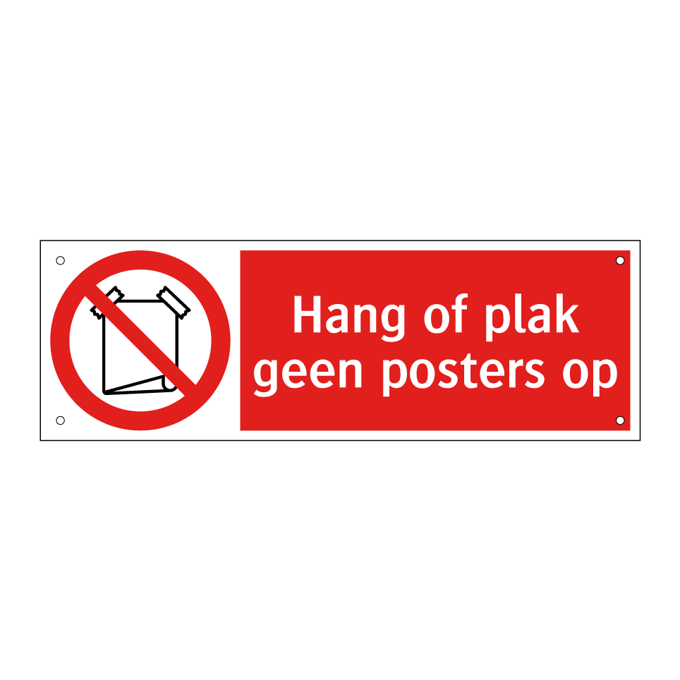 Deze opvallende verbodsbord is ideaal voor het handhaven van regels op verschillende locaties. Het is ontworpen om duidelijk te communiceren dat het ophangen of plakken van posters niet is toegestaan. Dit bord kan strategisch worden geplaatst in openbare ruimtes zoals winkelcentra, kantoren, scholen en andere instellingen waar het belangrijk is om muren en oppervlakken vrij te houden van ongewenste affiches. Door de heldere rode achtergrond en witte tekst trekt het onmiddellijk de aandacht van voorbijgangers, waardoor de boodschap effectief wordt overgebracht. Gebruik dit verbodsbord om een georganiseerde en nette omgeving te behouden.