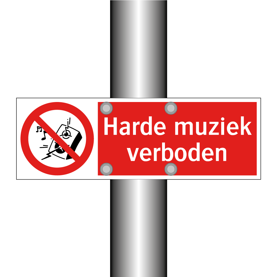 Deze opvallende verbodsbord is ideaal voor het handhaven van stilte en rust in diverse omgevingen. Het bord is perfect voor gebruik in openbare ruimtes zoals bibliotheken, ziekenhuizen en kantoren, waar het belangrijk is om een rustige sfeer te behouden. Door de duidelijke rode achtergrond en witte tekst met een herkenbaar symbool, trekt het onmiddellijk de aandacht en communiceert het effectief het verbod op harde muziek. Plaats dit bord op strategische locaties zoals ingangen, gangen of wachtruimtes om ervoor te zorgen dat bezoekers en medewerkers zich bewust zijn van de geluidsregels. Dit verbodsbord helpt bij het creëren van een aangename en serene omgeving.