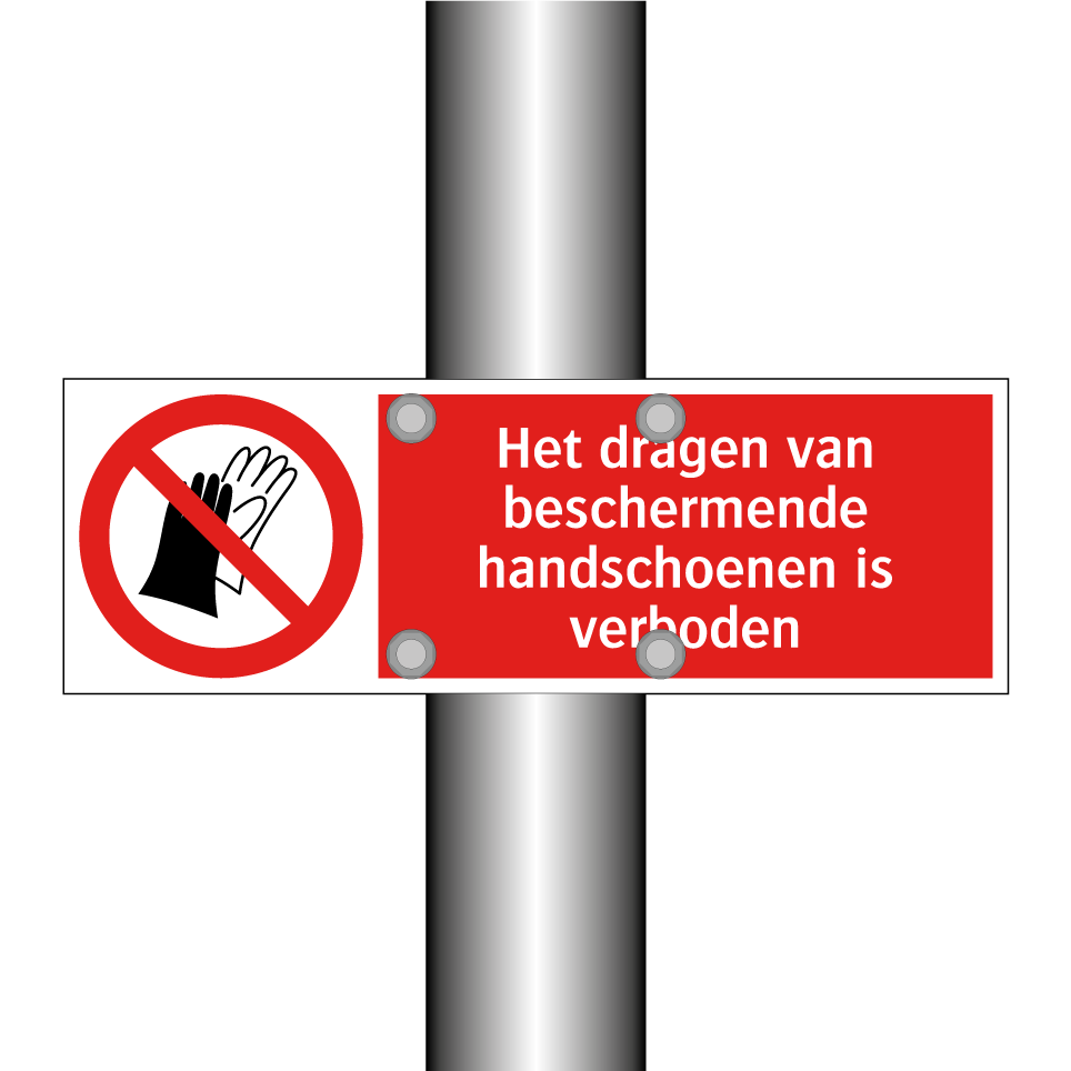 Verbodsbord met de tekst Het dragen van beschermende handschoenen is verboden