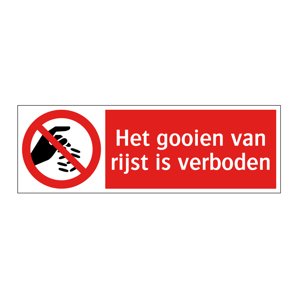 Verbodsbord met de tekst Het gooien van rijst is verboden