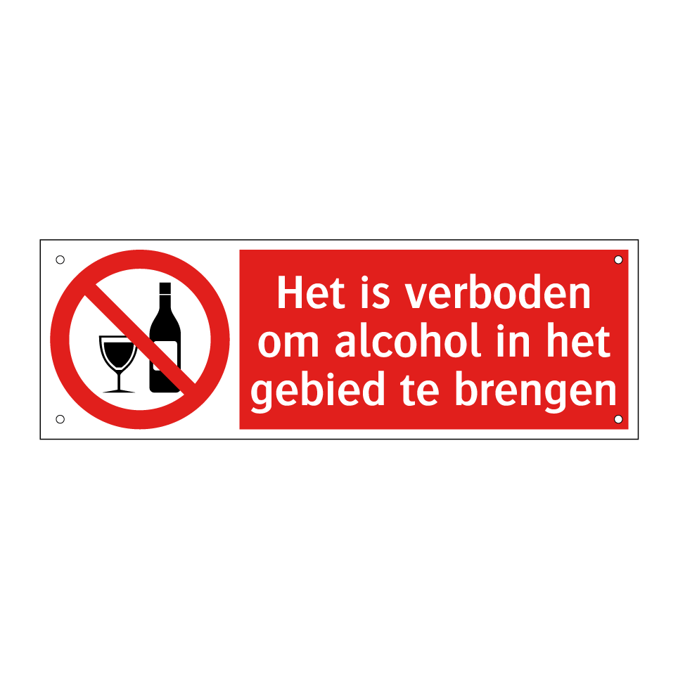 Verbodsbord met de tekst Het is verboden om alcohol in het gebied te brengen