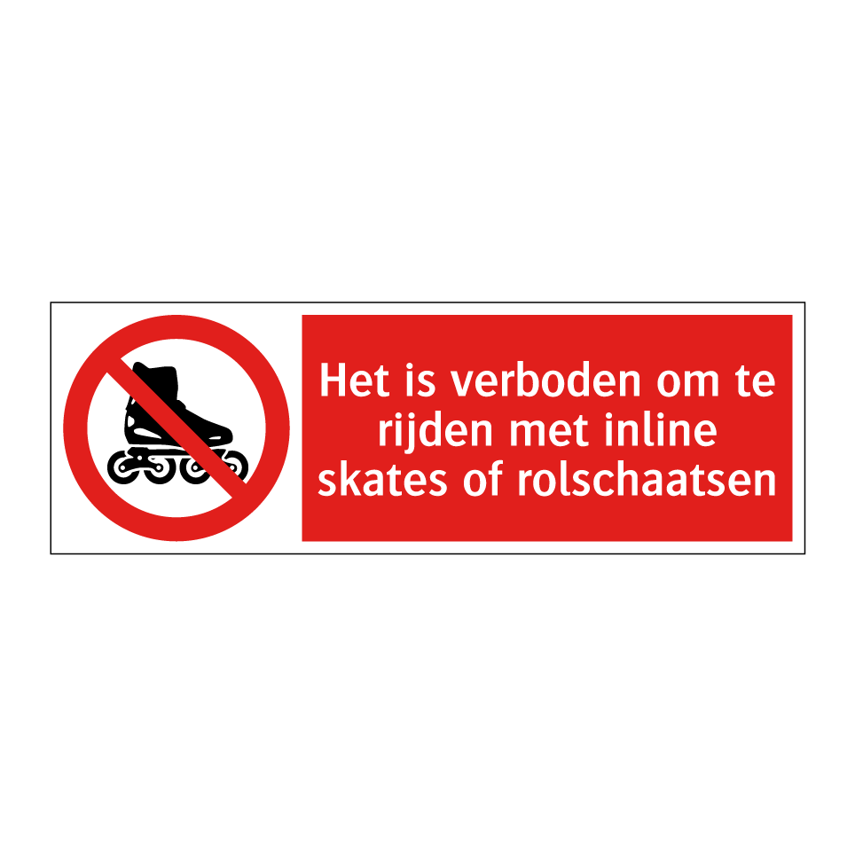 Verbodsbord met de tekst Het is verboden om te rijden met inline skates of rolschaatsen