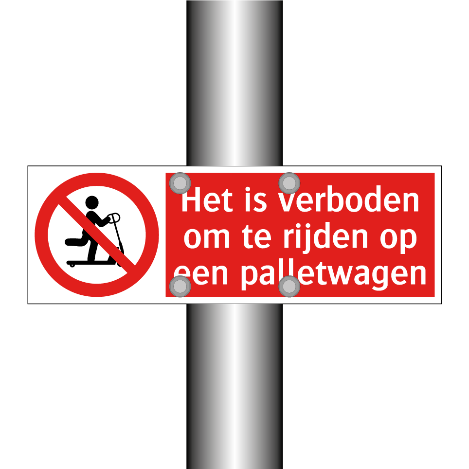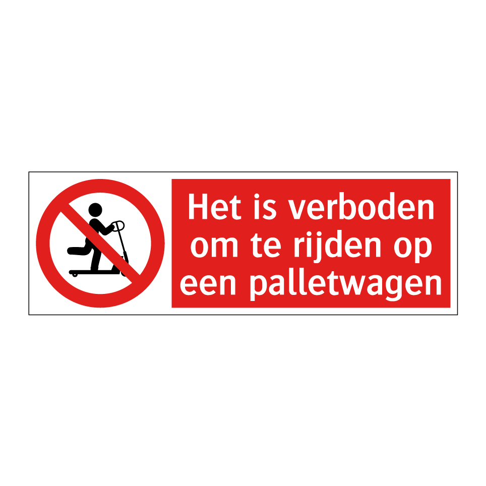 Verbodsbord met de tekst Het is verboden om te rijden op een palletwagen