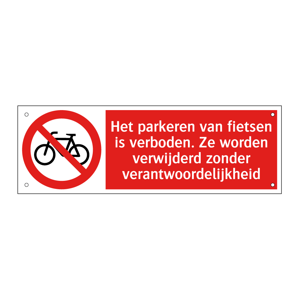 Deze opvallende verbodsbord is essentieel voor het handhaven van orde en veiligheid op drukke locaties. Het is ideaal voor plaatsen waar het parkeren van fietsen ongewenst is, zoals bij ingangen van gebouwen, smalle doorgangen of drukke winkelstraten. Door de duidelijke rode achtergrond en witte tekst met een herkenbaar symbool, trekt het onmiddellijk de aandacht van voorbijgangers en zorgt het ervoor dat de regels worden nageleefd. Dit bord is een onmisbaar hulpmiddel voor het voorkomen van chaos en het bevorderen van een georganiseerde omgeving. Plaats het op strategische plekken om ervoor te zorgen dat fietsen niet in de weg staan en de doorgang vrij blijft.