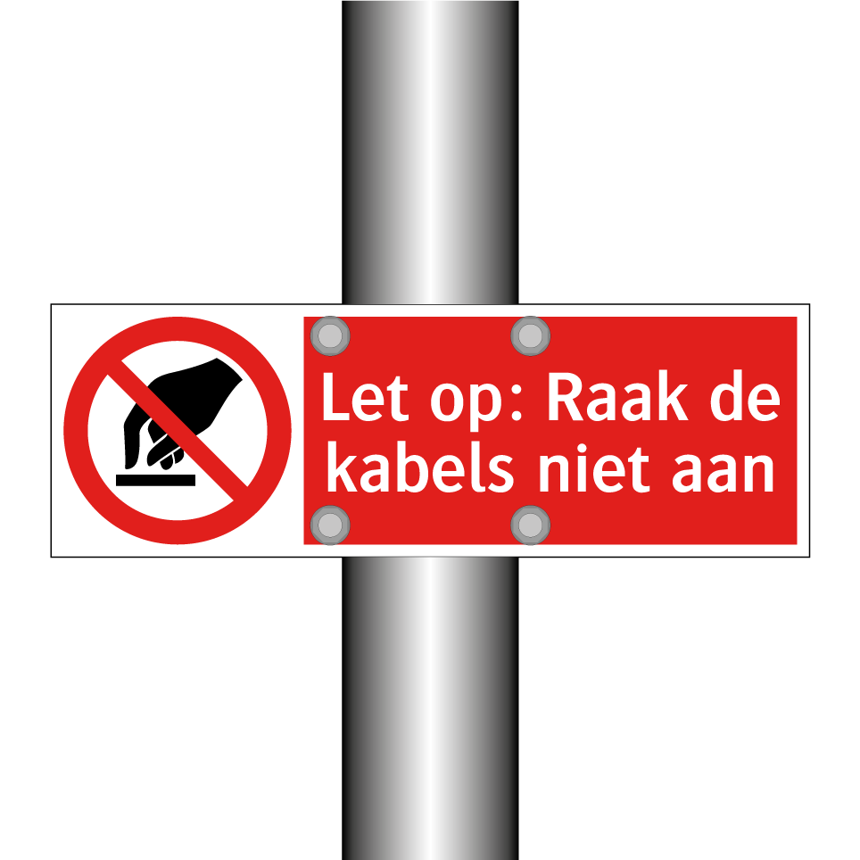 Verbodsbord met de tekst Let op: Raak de kabels niet aan