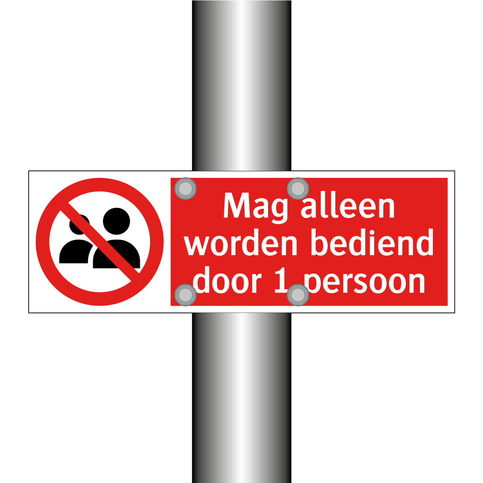 Verbodsbord met de tekst Mag alleen worden bediend door 1 persoon