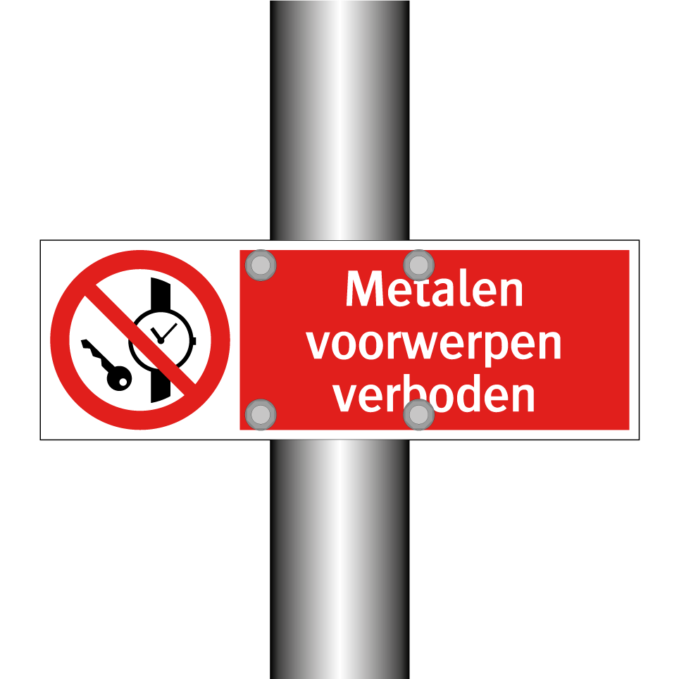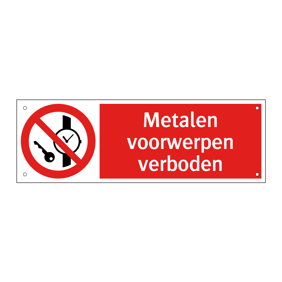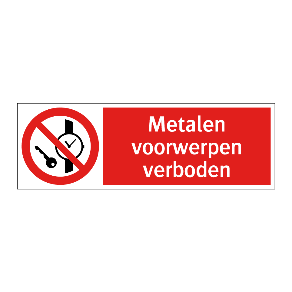 Verbodsbord met de tekst Metalen voorwerpen verboden