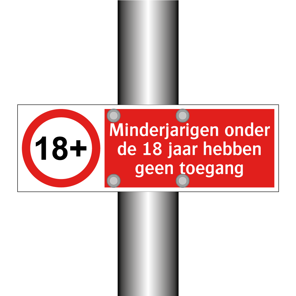 Verbodsbord met de tekst Minderjarigen onder de 18 jaar hebben geen toegang
