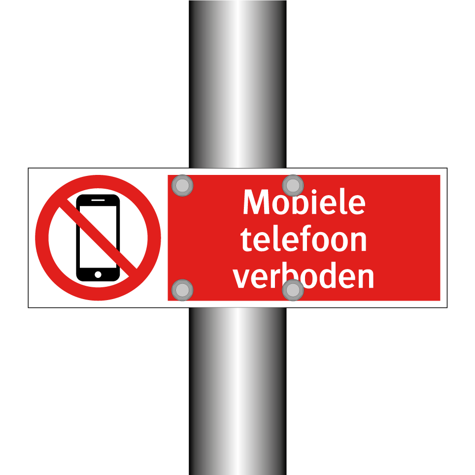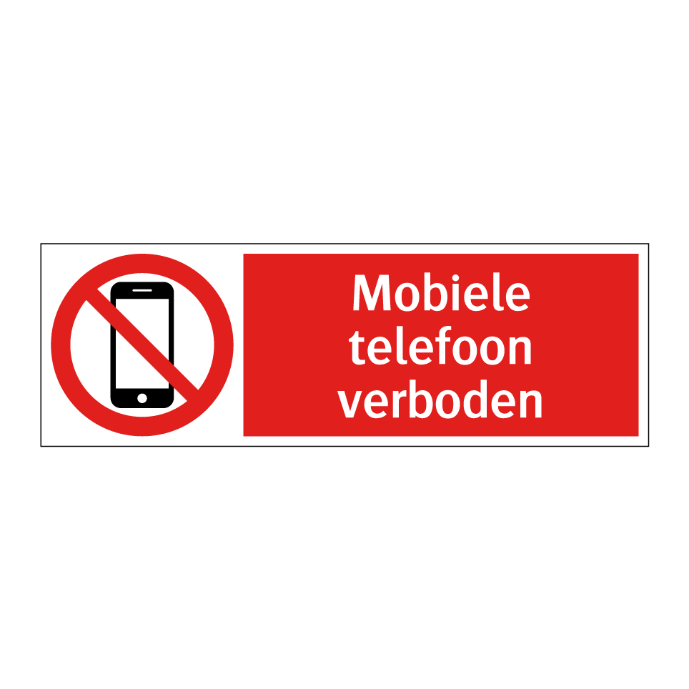 Verbodsbord met de tekst Mobiele telefoon verboden