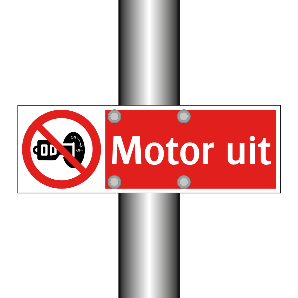 Deze opvallende verbodsbord is ideaal voor het waarborgen van veiligheid en het voorkomen van ongewenste situaties. Het bord is ontworpen om bestuurders te herinneren aan het uitschakelen van hun motor, wat essentieel is in gebieden waar uitstoot beperkt moet worden. Plaats dit bord op strategische locaties zoals parkeerterreinen, laad- en loszones, of nabij ingangen van gebouwen waar motoren niet mogen draaien. Door de duidelijke rode achtergrond en witte tekst met een herkenbaar symbool, trekt het onmiddellijk de aandacht en communiceert het effectief de boodschap. Dit verbodsbord is een onmisbaar hulpmiddel voor het handhaven van milieuvriendelijke en veilige omgevingen.
