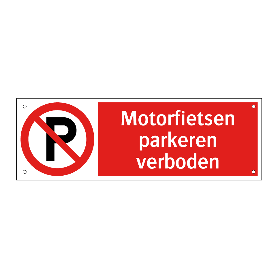 Dit opvallende verbodsbord is een essentiële toevoeging voor elke locatie waar het parkeren van motorfietsen niet is toegestaan. Met zijn heldere rode achtergrond en duidelijke witte tekst trekt het onmiddellijk de aandacht van voorbijgangers en zorgt het voor naleving van de regels. Dit bord is ideaal voor gebruik op parkeerterreinen, bij ingangen van gebouwen, of in drukke stadscentra waar ruimte schaars is. Door het strategisch te plaatsen, voorkomt u ongewenste parkeersituaties en bevordert u een georganiseerde en veilige omgeving. Het is een onmisbaar hulpmiddel voor het handhaven van parkeerregels en het waarborgen van de toegankelijkheid van uw terrein.