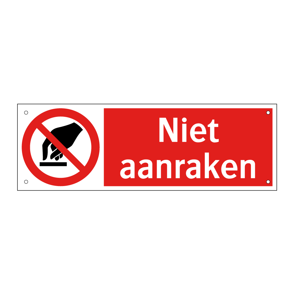 Deze opvallende verbodsbord is essentieel voor het waarborgen van veiligheid in diverse omgevingen. Het is ideaal voor gebruik in industriële omgevingen, werkplaatsen en andere gebieden waar het belangrijk is om mensen te waarschuwen om bepaalde objecten niet aan te raken. Door de duidelijke rode achtergrond en witte tekst trekt het onmiddellijk de aandacht en communiceert het effectief het verbod. Plaats deze bord op strategische locaties zoals bij machines, elektrische installaties of andere gevaarlijke zones om ongelukken te voorkomen. Het gebruik van dit bord helpt bij het handhaven van veiligheidsprotocollen en beschermt zowel personeel als bezoekers tegen mogelijke gevaren.