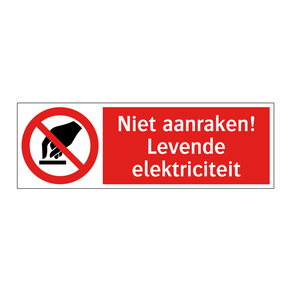 Verbodsbord met de tekst Niet aanraken! Levende elektriciteit