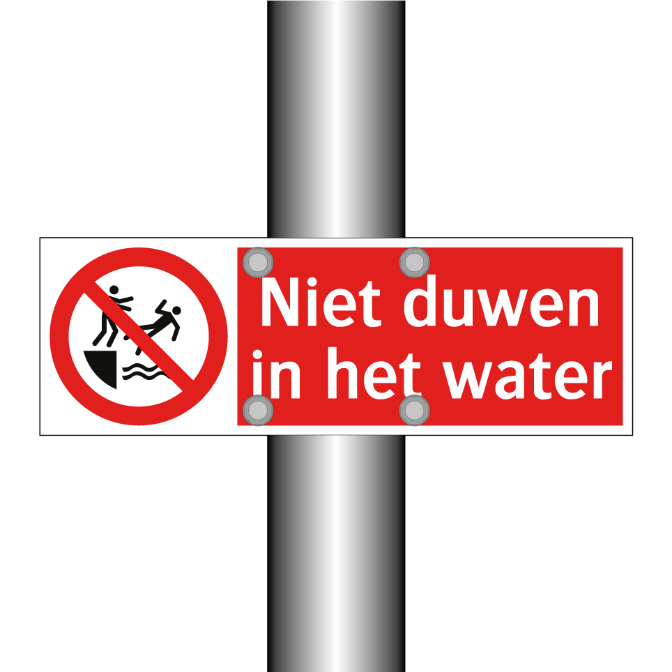 Deze opvallende verbodsbord is essentieel voor het waarborgen van veiligheid in gebieden met water. Het is ideaal voor gebruik bij zwembaden, vijvers, meren en andere waterpartijen waar het belangrijk is om mensen te waarschuwen om niet in het water te duwen. De duidelijke rode achtergrond en witte tekst met symbool zorgen ervoor dat de boodschap niet over het hoofd wordt gezien. Plaats deze verbodsbord op strategische locaties zoals ingangen, langs paden of bij waterkanten om ongewenst gedrag te voorkomen en de veiligheid van bezoekers te garanderen. Deze bord is een onmisbaar onderdeel van elke veiligheidsmaatregel rondom water.