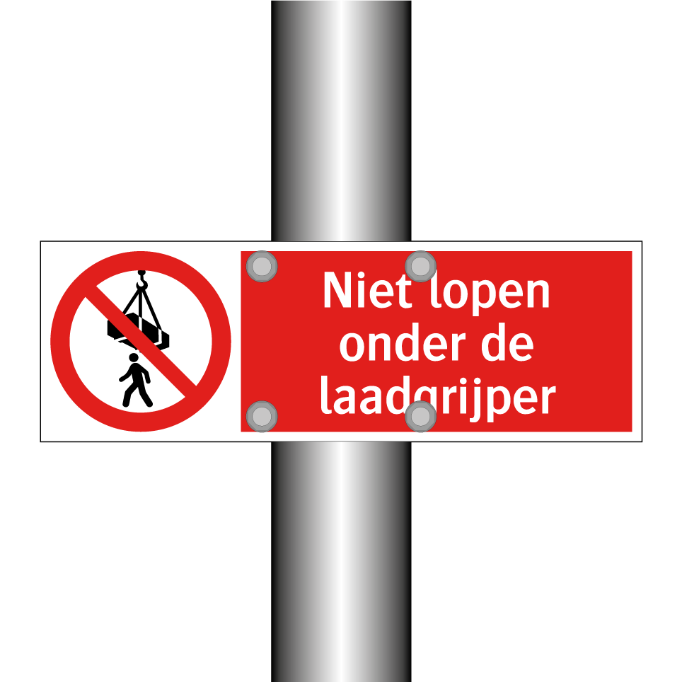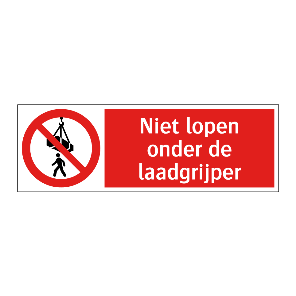 Verbodsbord met de tekst Niet lopen onder de laadgrijper