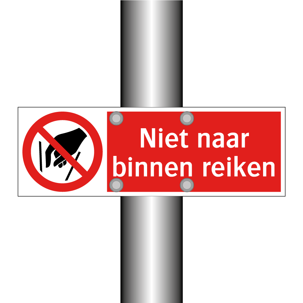 Deze opvallende verbodsbord is ideaal voor het waarborgen van veiligheid en het voorkomen van ongewenste handelingen. Het bord is perfect voor gebruik in magazijnen, fabrieken en andere industriële omgevingen waar het belangrijk is om te voorkomen dat mensen hun handen of armen in gevaarlijke zones steken. Door de duidelijke rode achtergrond en witte tekst met een herkenbaar symbool, trekt het onmiddellijk de aandacht en communiceert het effectief het verbod. Plaats het bij ingangen, machines of andere risicovolle gebieden om ervoor te zorgen dat iedereen zich bewust is van de veiligheidsregels en om ongelukken te voorkomen.