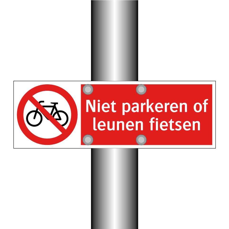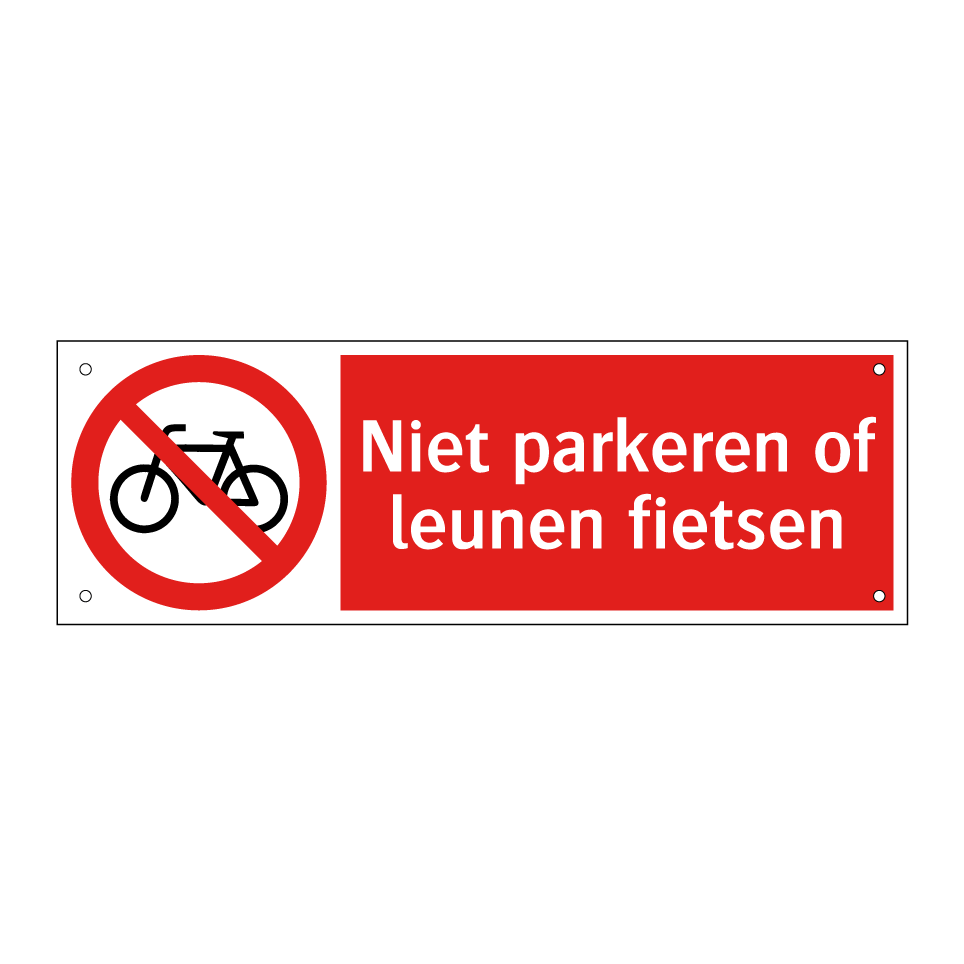 Verbodsbord met de tekst Niet parkeren of leunen fietsen